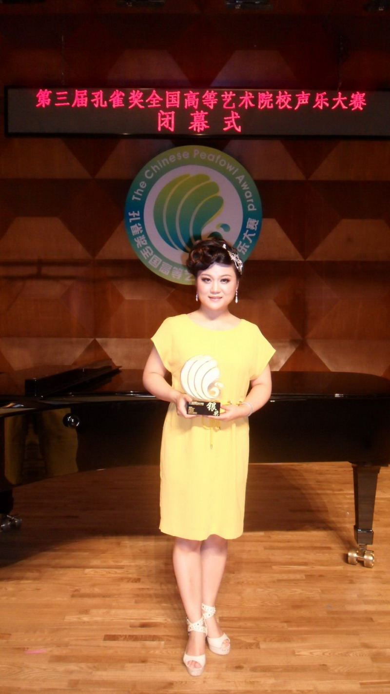 “第三届孔雀奖全国高等艺术院校声乐大赛”7月12日在广州拉开帷幕。milan米兰音乐系青年教师袁渊代表学校参加比赛,在昨日下午进行的决赛中获得民族唱法教师组银奖第一名的好成绩。 “第三届孔雀奖全国高等艺术院校声乐大赛”由中国声乐家协会、中国社会音乐研究会、全国百所高等艺术院校联合举办,旨在发现、挖掘和培养更多、更优秀的声乐人才,为目前我国高等院校声乐最大规模、 最具学术性、规范性的高层次交流和比赛活动。据悉,本次大赛设教师、研究生、老员工、民间组,其中教师和研究生分别设民族、美声、流行唱法组,全国各大艺术院校十多位著名声乐教育家、歌唱家、作曲家、音乐评论家担任本次比赛评委。各组别分设金奖一名,银奖两名,铜奖三名。来自全国一百多所院系共500多名选手参加了本次比赛。本校教师袁渊发挥出色,一路闯关,晋级民族唱法教师组决赛,最终凭借《恨似高山仇似海》、《我的江汉大平原》两首歌曲的精彩演绎,赢得评委、专家的高度评价,一举捧回大奖。
