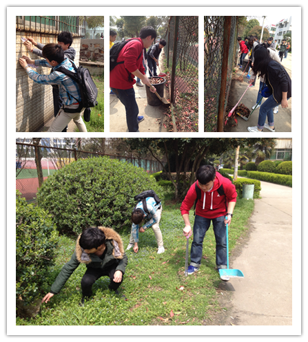 (milan米兰记者 李英新)随着三月雷锋月的到来,2013年3月21日12点15分milan米兰团学联主席、部长及所有干事青年志愿们在篮球场附近积极参与打扫清洁工作。