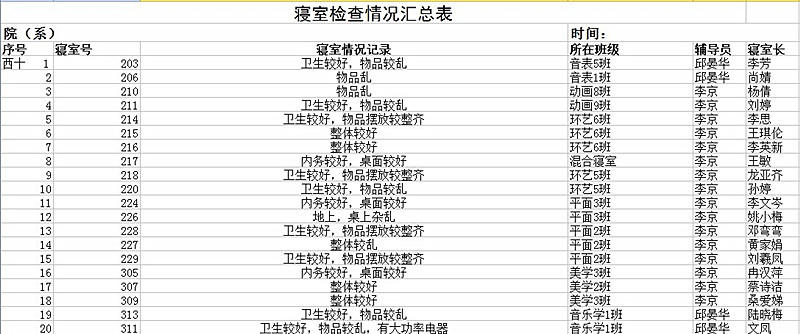 milan米兰第七周12级员工寝室检查情况汇总表