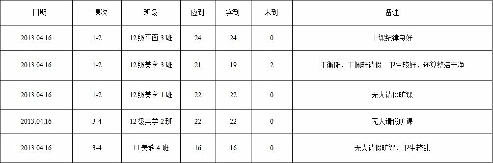 milan米兰第八周星期二12级员工课堂考勤检查情况汇总表