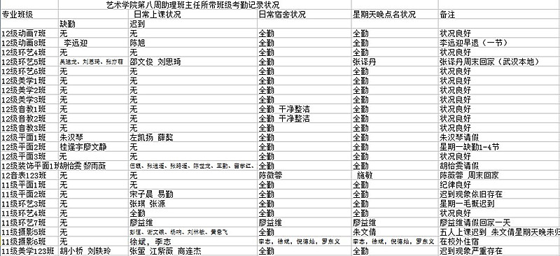 milan米兰第八周助理班主任所带班级考勤记录状况