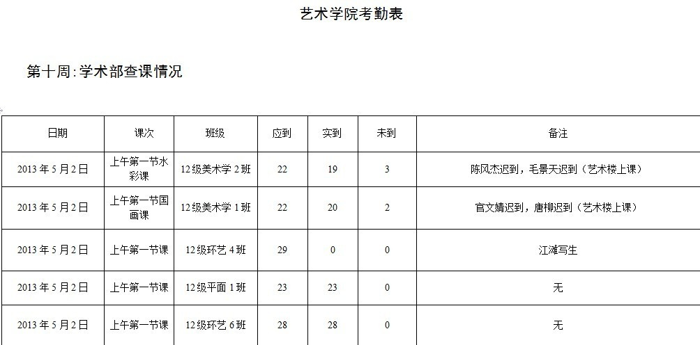 milan米兰第十周学术部查课情况汇总表