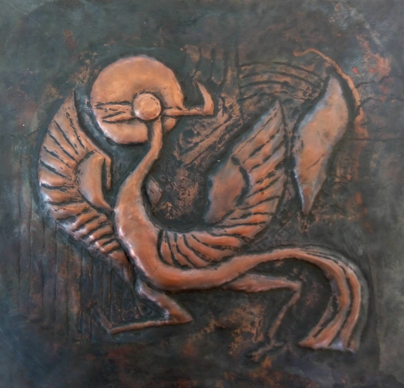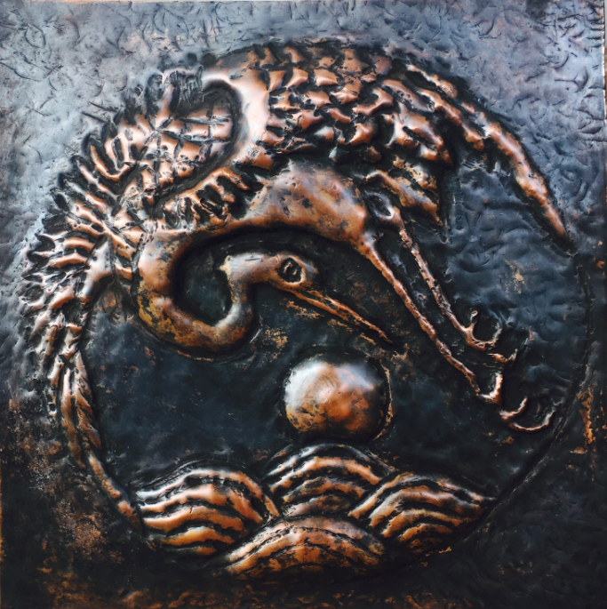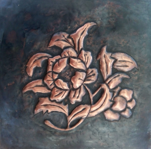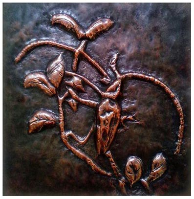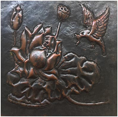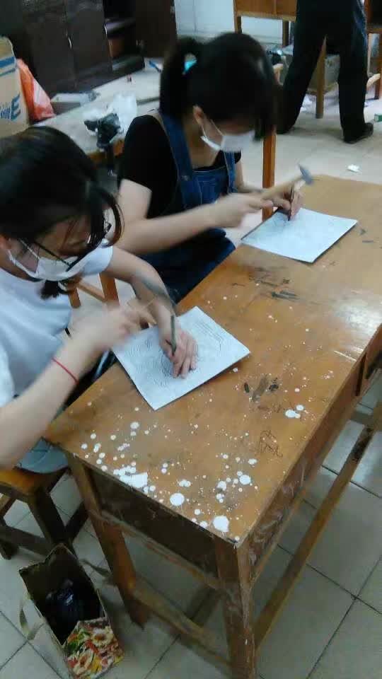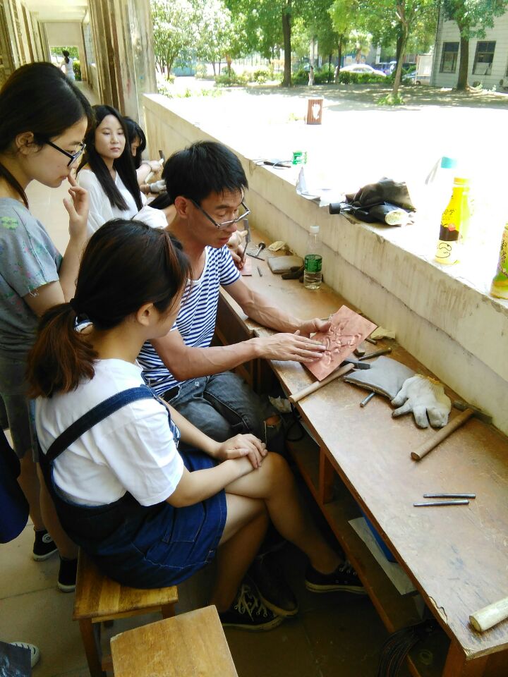 指导教师张虎在辅导员工锻铜技法 女汉子们挥锤如雨