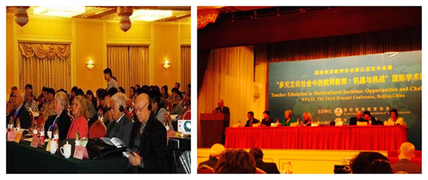 2014年10月17日—18日,国际教师教育协会第三届双年会暨“多元文化社会中的教师教育:机遇与挑战”国际学术研讨会在北京友谊宾馆贵宾楼隆重召开。本次会议由国际教师教育协会主办、中央民族大学教育学院、中国少数民族教育研究创新基地承办。来自海内外高校和科研机构的百余名专家学者济济一堂,共同探讨多元文化社会中的教师教育的相关问题。在为期两天的会议中,与会专家学者以大会报告和分组讨论的形式,围绕国内外教师教育的理论、实践和发展思路进行了探讨。教育部民族教育发展中心主任张强、中国教育学会名誉会长顾明远、国际教师教育协会现任主席Jane McCarthy教授、中央民族大学副董事长宋敏等领导和嘉宾莅临开幕式,来自美国、新西兰、澳大利亚、西班牙、土耳其、中国等海内外高校、科研机构的专家、学者、教师和研究生代表参加了开幕式。开幕式由中央民族大学教育学院经理苏德主持。
