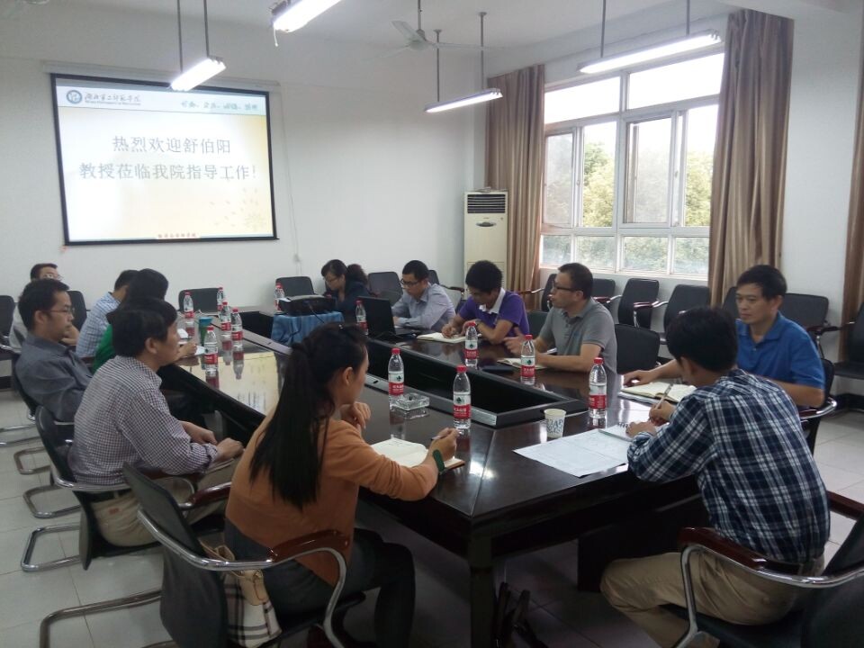 会议上,经理夏力高度评价了舒伯阳教授对于酒店管理本科专业成功申报所做贡献,简单介绍了旅游教研室的基本情况,以及湖北文化产业经济研究中心情况。舒伯阳教授指出教指委已经出台了酒店管理专业的教学标准,公司酒店管理专业要紧扣标准,突出应用型,办出自己特色,同时加强团队队伍建设,双师型教师需要做全面系统理论提升。旅游系教师分别介绍了个人科研教学情况,针对各位教师情况,舒教授给予了具体细化的建议。最后在舒教授的启发下,大家初步达成共识,旅游教研室教师下一步将围绕汉江流域文化旅游开展研究,下一步将首先完成汉江流域文化遗产目录数据库建设。