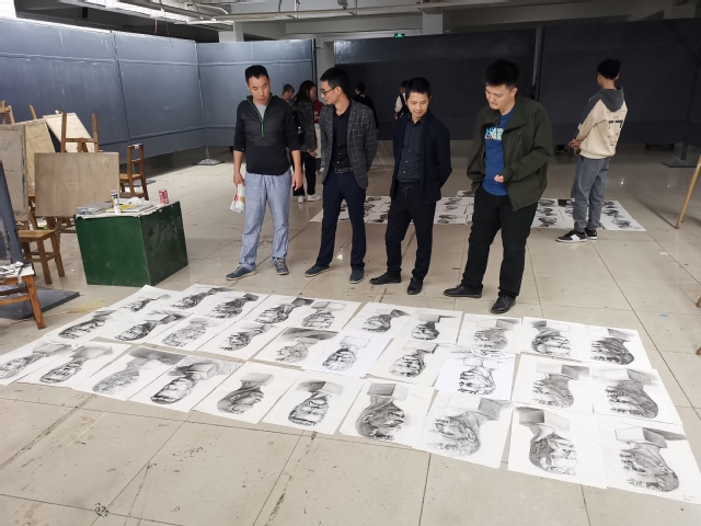 2020年10月27日下午数媒系系主任付丹老师邀请milan米兰赵文副经理、美术系张虎副主任及数媒系副主任叶凡老师一同在milan米兰展厅对2020级动画专业新生素描课阶段性作业进行了集体评议。在听取任课老师介绍课程目标及如何完成目标的课程教学设计方法后大家根据作品一起讨论了这届员工的专业基础技能水平,分析了形成的原因,提出了针对性的解决建议。本次教学活动也是对动画专业2020级本科新生专业复测工作的落实。