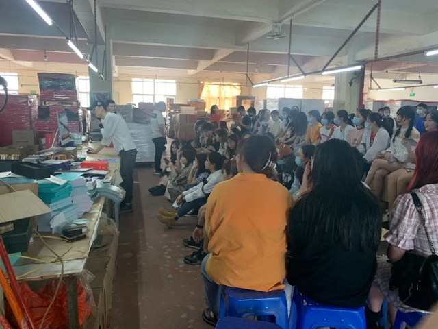喜上包装的小白老师在生产线前端给同学们分享生产工艺、结构创意,怎么输出标准清晰的标准文件制作,以及产品包装如何落地更精准、更高效。