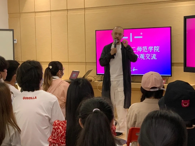 视觉传达专业的老师们也与曲总从行业的发展变化及前景发、公司的项目类型、业务范围的变化、人才需求等方面进行了深度的交流,最后金波经理讲话,表示对集团和曲总的感谢,也邀请曲总有机会来到二师与师生更近一步交流。