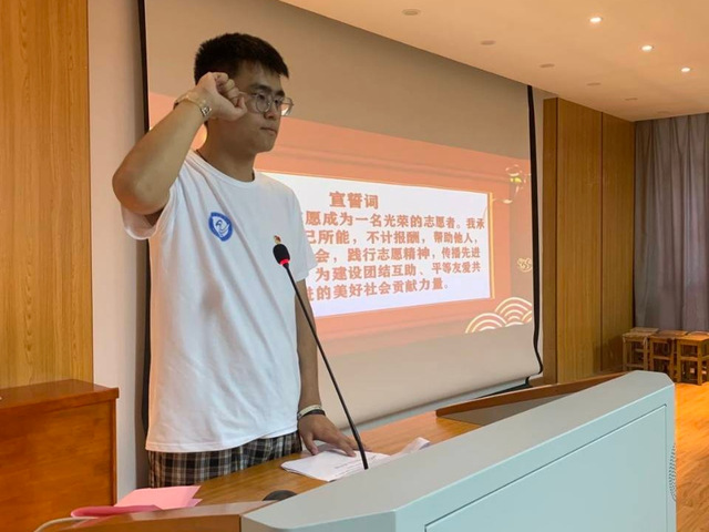 校级重点立项团队“艺心助学”志愿服务队负责人发言并宣誓