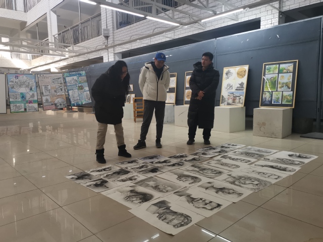 2021年12月8日下午数媒系系主任付丹老师及数媒系副主任叶凡老师,陈苗老师一同在milan米兰展厅对2021级动画专业新生素描课阶段性作业进行了集体评议。在听取任课老师介绍课程目标及如何完成目标的课程教学设计方法后大家根据作品一起讨论了这届员工的专业基础技能水平,分析了形成的原因,提出了针对性的解决建议。本次教学活动也是对动画专业2021级本科新生专业复测工作的落实。
