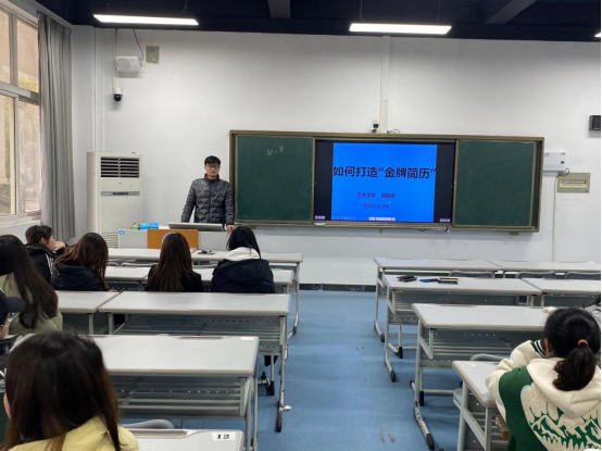 聂老师通过举例分析,解答同学们简历制作中出现的种种问题,使同学们明白简历制作的重要,个人简历主要用于介绍自身的客观情况,以达到“推销”自己的目的。个人简历的构成包括个人基本资料、求职意向、教育背景、实践经历、奖励和荣誉、技能和特长等。其他可选项里,可以有论文、课题、兴趣爱好、自我评价等。求职意向是整篇简历的“主题”。说清楚应聘的具体岗位或简述本人对哪些岗位、行业感兴趣。简历制作是毕业生要做的重要功课之一,做好一份简历,更好的展示自己,让毕业生用有一个完美的敲门砖,助力毕业生们就业竞争力提高。