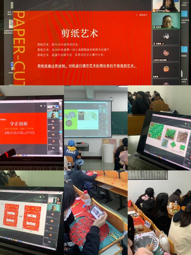 本网讯(通讯员程蓉洁)3月24日上午,视觉传达设计专业程蓉洁副教授的《中国剪纸艺术》课程中,特别邀请到明视角创意总监,平面设计师,新锐剪纸艺术家吕延明老师线上分享。吕老师从剪纸发展,剪纸守正创新、剪纸心流感应、个人作品的创作背后的思维与转换等内容进行分享。同学们听得特别认真,也对剪纸艺术有了更加深刻理解,特别是在剪纸艺术的创新意识和思维上很受启发。