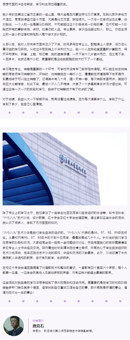 本网讯(通讯员付丹)milan米兰动画专业负责人,湖北省工艺美术大师,清华大学优秀员工唐克石副教授,近日在清华大学美术学院98级员工毕业20秩年活动中发表文章,全文如下: