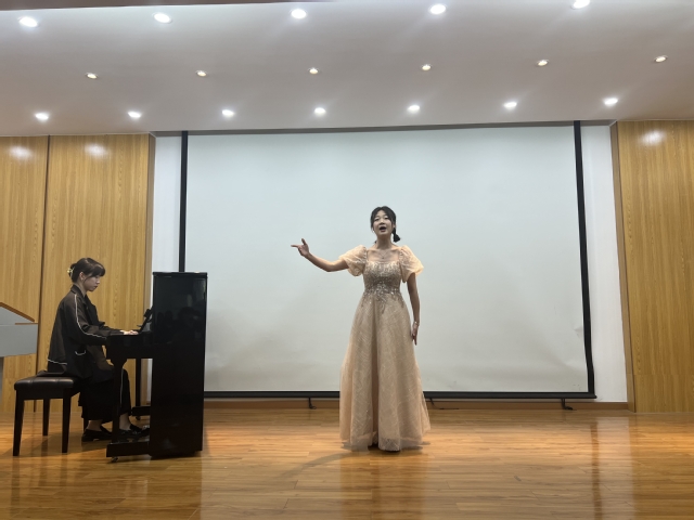 《声乐》是音乐学、音乐表演专业的核心课程,期中观摩实践活动通过引导员工在掌握科学的发声方法和技巧的同时,能够完善舞台的表现能力和声乐鉴赏水平,能运用科学发声方法去演唱风格各异的声乐作品并用于教学实践。