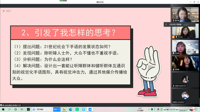 按照答辩时间,答辩组组长召集答辩委员、答辩人进入线上平台的会议室,有限允许旁听员工参会,并做好会议记录和答辩记录。员工就毕业设计(论文)的研究内容、研究思路、设计过程、成果展示等内容进行10分钟讲述。评审老师们对员工的作品以及提出的新颖观点给予了充分肯定,也对员工们普遍存在的一些问题进行了提炼并给出了改善建议。