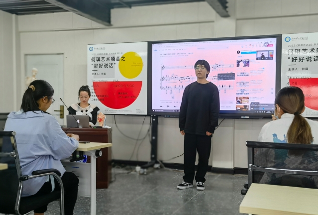 在结束之际,何琪提到正确的发声能够降低沟通障碍,强调在日常生活中应当适度用嗓,保护嗓子以免受损。她向同学们总结归纳了九条用嗓贴士,强调了用嗓规范,如注意科学用嗓,接受发声训练,调整生活作息等。“声音在生活中无处不在,发现声音的多元美,学会欣赏美的声音,并通过科学的发声练习创造美的声音,也是提升审美感知的一种有效手段。”何琪在讲座结束时说道。