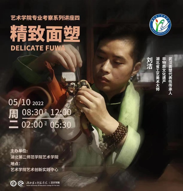 中心于2022年5月5-10日活动实践中心分别邀请了教育部中华优秀传统文化传承基地(汉秀)核心成员王妮教授、武汉木雕代表性传承人张静教授、湖北工艺美术大师、武汉面塑代表性传承人刘洁、传统榫卯家具制作高级工艺师曾学明等来到艺术创新实践中心为同学们分享他们各自行业的技艺。