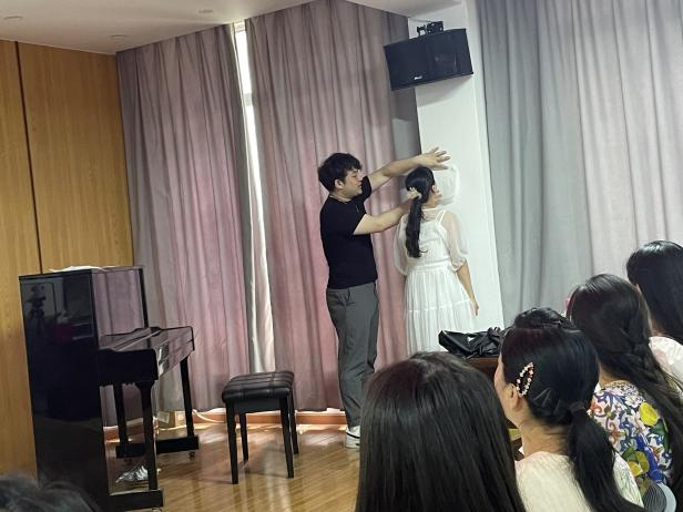 AC米兰中文官网的杜寒枫老师寓教于乐,带来了一场《关于管乐呼吸的运用》的风趣幽默的互动课程。在讲授知识的过程中穿插自己真实经历,运用了气球、纸巾、水瓶等实物道具与学员们进行互动让大家都能有一种真实体验感在这种体验下让我们有了更真实的学习感受知道了什么是“呼”,什么是“吸”,可实践性可操作性强对我们的教学有很好大的帮助通过坐、立、躺三种状态时的呼吸,让我们学习到如何才能更好地做到“呼吸”,夯实了声乐教学中最基础的气息技巧。课堂氛围轻松愉快,专业知识丰富,学员在实践中得到快速提升。