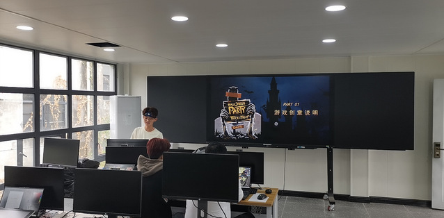 接下来,回到课程本身,付老师引导不同的小组,采取“头脑风暴”的形式,探讨各自原创的游戏策划方案,系统的体会团队合作完成游戏策划的流程然后再一次进行课堂汇报。这次汇报采用组与组之间的提问与答辩形式进行。整个交流过程气氛热烈,各小组通过答辩活动总结出了自己策划案的不足与改进方向,也学习到了其他小组的优点。