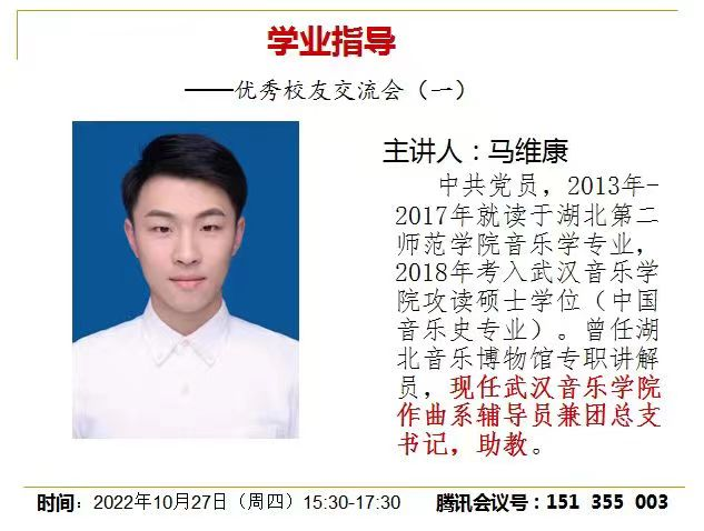 马维康是公司2017届优秀毕业生,2018年考入武汉音乐学院攻读硕士学位(中国音乐史专业),现任武汉音乐学院作曲系辅导员兼团总支书记、助教。