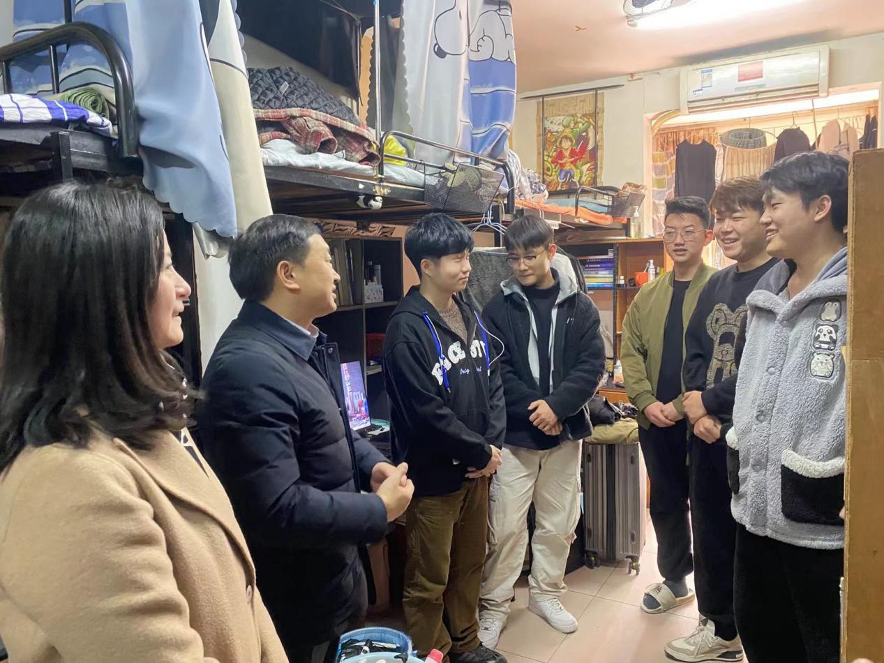 走访过程中,副董事长田恒平为同学们送去了新春的问候,关切地询问同学们寒假的学习生活情况、健康状况,认真倾听员工对课堂教学、实践教育、食堂服务、任课教师和辅导员工作等方面的反馈。