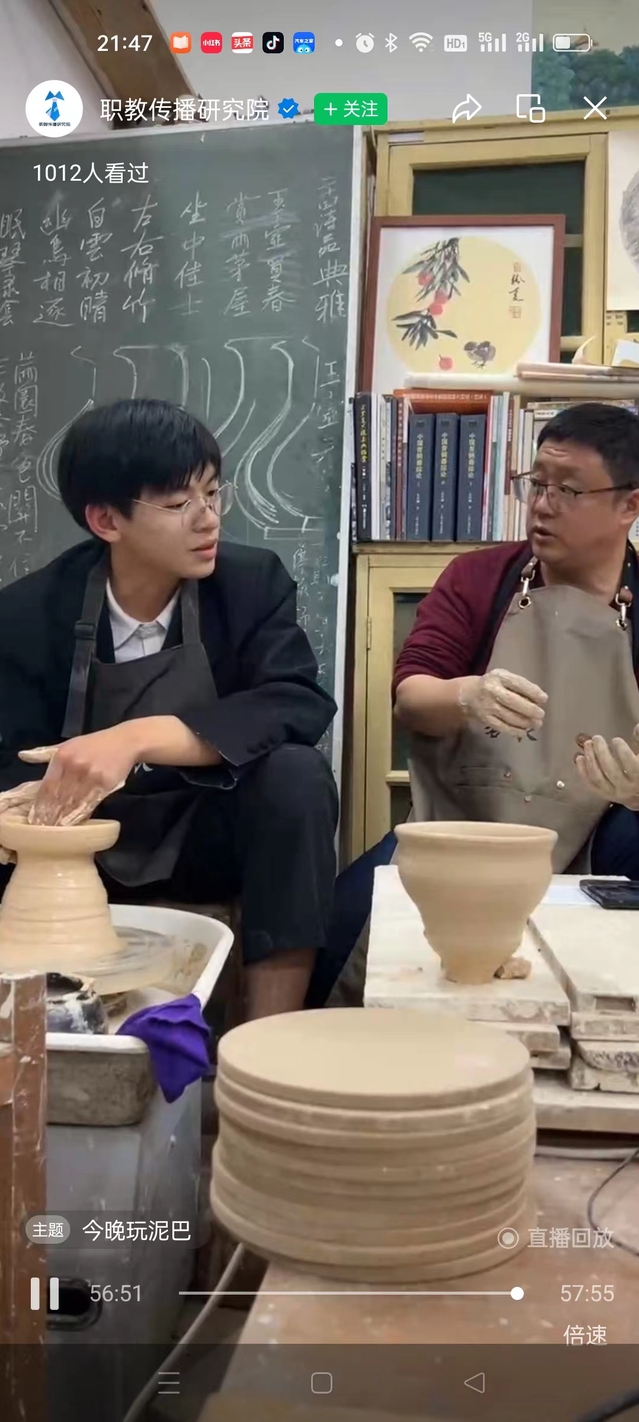 该直播是主很有趣的一次直播要讨论了陶瓷艺术职业教育中的美育问题。可以想象,在陶艺制作过程中,员工不仅能够培养自己的审美意识和艺术能力,还能够体验到创造性表达的乐趣。从观众的关注和认可,表明了公众对于美育教育的重视程度。在当今社会中,艺术教育已经不再是一种“附加值”,而是一项必要的教育领域,它可以帮助人们发展自己的批判性思维、创造性思维以及审美能力,这些都是非常有价值的素质。