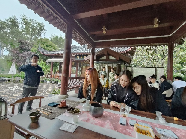 本网讯(通讯员 赵学辉)2023年5月10日,唐克石老师和官彬老师组织20级动画专业员工在武汉市沙湖悟铭阁开展茶文化非遗考察。中国的茶文化非遗已经成为世界非物质文化遗产,柴米油盐酱醋茶,我们在生活和工作中,经常会涉及到茶文化。同学们在今天的考察中品尝了恩施玉露、政和白茶、正山小种、凤凰单丛、赤壁青砖茶和鹿苑黄茶。散茶是茶叶独立的浪漫,是自我个体的展示,也是自馥茶香别具一格的升华,每一片茶叶都诗写着经年的盛宠与爱,同学们顺着叶纹不断找寻,了解茶文化,体验茶道,在专业课学习之余领略不一样的文化。