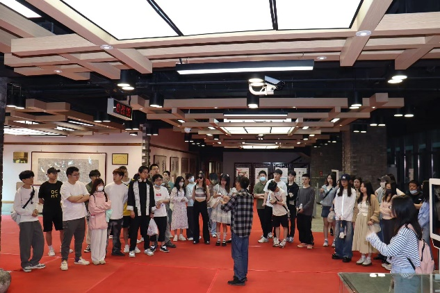 本网讯(通讯员 王子怡)2023年5月9日,唐克石老师和官彬老师组织20级动画专业员工在武汉市汉口文化体育中心开展了荆楚金石、汉雕、汉绣文化非遗考察。荆楚近视博物馆地处繁华的汉口市区,坐落于美丽的西北湖畔。馆藏各类古砖古瓦以及拓本共计2000余件,蔚为大观,卓成体系。藏品的时空跨度从商代相沿至新中国初。藏品既能体现出各地的地域特色,又能从社会意识形态、文化思想,民俗信仰等层面反映出中华文化共有的精神内核。任本荣汉绣工作室里是汉绣世家任本荣祖孙三代的传承人的展览,展览分为“锦绣相承”“奉道斋僧”“衮衣绣裳”“眉寿颜堂”“香闺绣阁”五个单元。汉绣作品色彩浓艳,雍容华贵,处处流露出楚风汉韵。