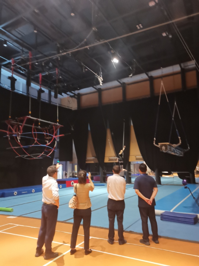 紧接着学子们在工作人员的带领下来到剧场的5楼马道区域,从技术、设备方面对大家进行了讲解与展示。演员演出时所需装备的防护设施、威亚,以及12辆价值不菲的小车。剧场的小车在演出中起到了关键作用,负责运输演员及演出所需物品。