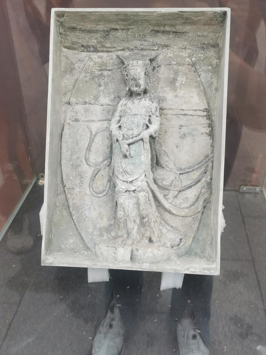 龛高211、宽114、深104厘米。龛正壁刻摩利支天女,左、右壁刻八大护法金刚。摩利支天女作三头八臂,手持诸般兵器,立于战车上,为佛家神通广大的护法神。