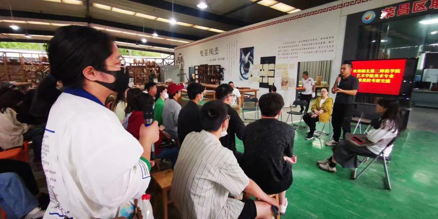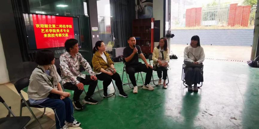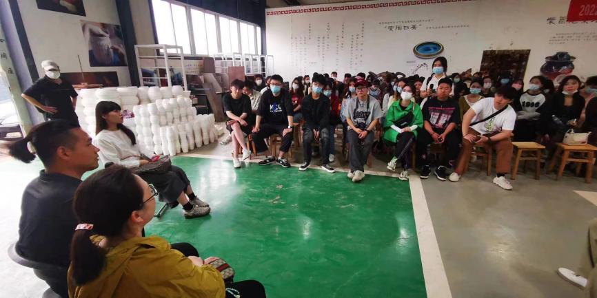 参观完毕后,我们在此与该校美术专业老师进行了交流学习。该校四位老师向我们分享他们的学习与工作经历,让我们受益匪浅。同学们也针对该校陶艺专业的课程设置、培养方向、专业发展前景等方面进行提问。通过老师的回答后我们了解到该校的陶艺专业课程设置是以文化课为主的教学,并没有以培养技能型人才为路径走,更加着重于升学。