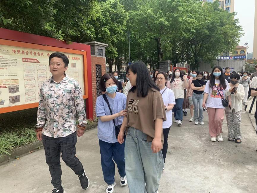 (图为重庆市大足田家炳中学刘学老师带领公司师生参观校园)