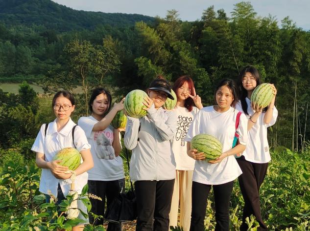 图5 :安咀村书记带志愿者们摘西瓜体验并介绍这是该地区的特点之一