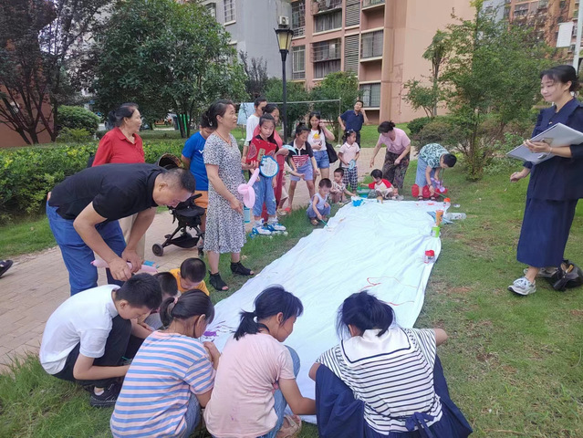 图为社区涂鸦活动,孩子们在画布上天马行空,恣意作画。他们用画笔和颜料勾勒出想象中的世界以及童年生活的美好。