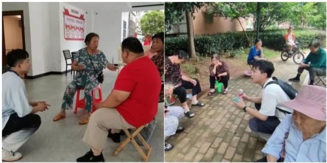 志愿者在社区内走访调研了解社区居民生活情况及文娱活动需求。