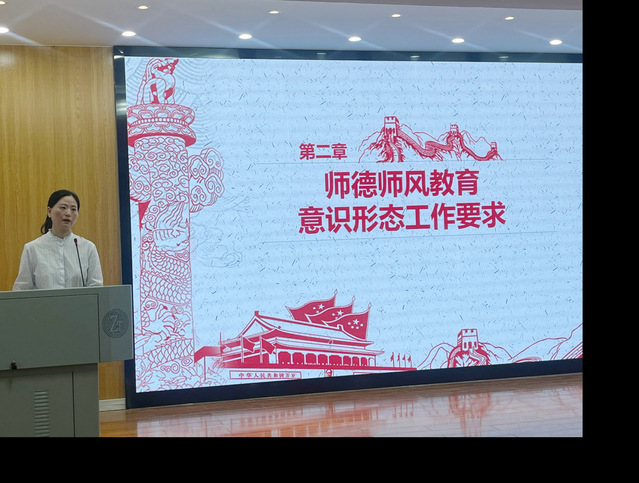 章倩书记首先对milan米兰暑期工作情况进行了通报,对学院师生志愿服务团队深入社区、街道、乡镇,开展丰富多彩的暑期实践活动和取得的成果,以及师生们在活动中所体现出来的服务意识、团队意识和不畏酷暑、不怕吃苦的精神给予了高度赞扬,对暑期参与学院各项工作的老师们表示肯定。之后章书记带领全体教师一起学习了《教育部公开曝光第十三批7起反教师职业行为十项准则典型案例》,并对新学期教师师德师风和意识形态工作作出了明确要求,指出要以《新时代高校教师职业行为十项准则》为标尺,明确什么该做,什么不该做,在守牢师德师风底线的同时加强教书育人工作,以培养员工成人成才为目标,潜心教学、关爱员工;全体教师要守牢意识形态课堂主阵地,把握什么不该说,应该说什么。要加强课堂思政,弘扬爱国主义精神、团结奋斗精神和改革创新精神,要教会员工爱党爱国爱人民。各系部要加强对员工专业活动的内容和视频背景进行把关,开展学术交流活动和校企交流活动应提前报批。最后,章书记带领大家学习《AC米兰中文官网章程(2023年)修订稿》,并指出作为二师的一份子,每一位教师都应熟悉《章程》,知道学校的办学理念、办学目标、办学原则及办学特色,要将校训铭记在心,积极弘扬二师精神,要爱校爱岗,珍惜岗位,要把专业发展看作职业的生命线。