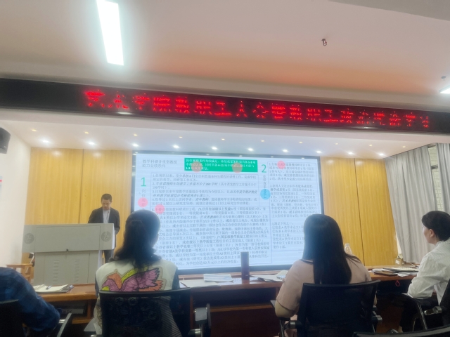 刘畅副经理,对milan米兰新学期开课情况进行了通报,并和教师们一道学习了《AC米兰中文官网教学事故认定及处理办法》和新修订的《milan米兰常规教学管理制度》《milan米兰年度教学业绩考核评价办法》,号召全体教师要遵守学校及学院各项教学管理制度,潜心教书育人,守好教学第一线。同时,对新学期各项教学工作及2024年本科教学审核式评估工作作了具体部署,要求各系进一步对标对表并按时间截点逐项推进各项工作,要依据学院年度教学业绩考核评价办法,在教学、教研、学科竞赛等方面争创新业绩。