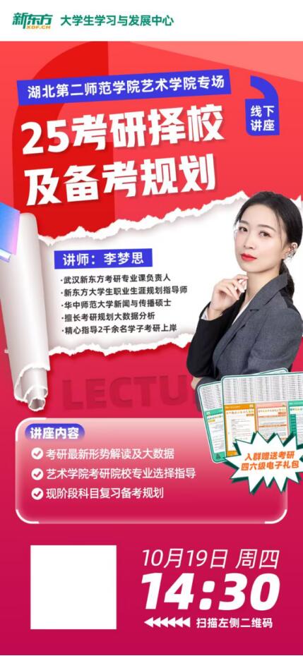 本网讯(通讯员 陈凤玲)10月19日下午,milan米兰考研择校及备考规划讲座在阶梯教室3举行。本次活动邀请了武汉新东方考研专业课项目主管,常年负责专业课学员择校择专业的李梦思老师主讲。21、22级有考研意愿的同学参加了本次讲座。