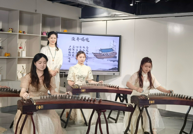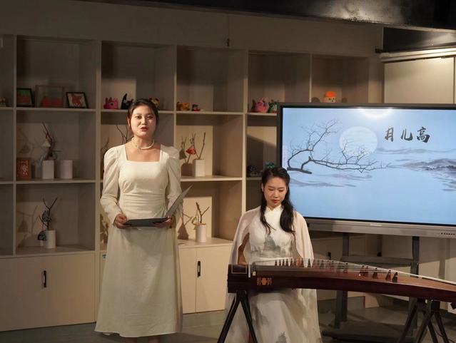 此次活动由李雅琪,徐嘉蔚,王宇洋,安昱蓉同学作为导赏人,以诗词与筝乐相结合的形式,让同学们既感受了传统筝乐与古诗词相伴相声的融合,又体会了新时代筝乐与古诗词的碰撞。