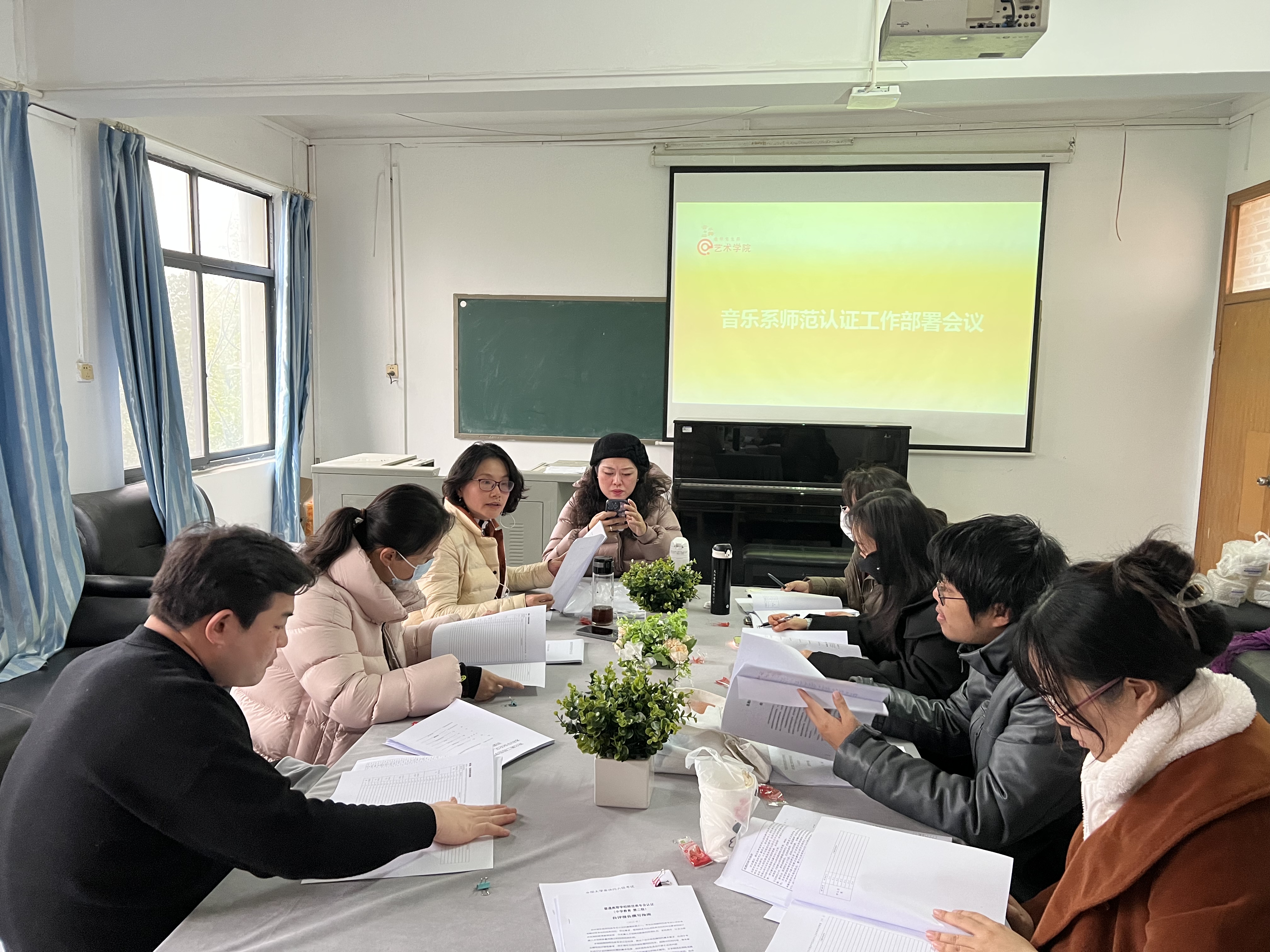 本网讯(通讯员 寇琰)12月21日下午,音乐系在艺术楼505教室举行师范认证工作动员大会。音乐系主任韦也纳副教授、专业负责人欧阳亮教授及各教研室主任、各版块撰写小组专业教师参会。