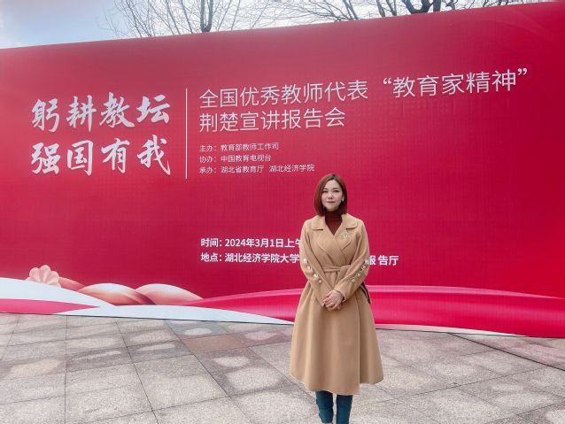 李娇在听完报告会后,接受极目新闻记者采访时谈到:在每一位教师鲜活生动的故事背后,都强烈感受到了立德树人的崇高使命、为人师者的仁爱之心,他们都真正做到了为员工点亮梦想,自觉成为强国之师的原动力。自己会继续秉承学校“学高、身正、诚毅、笃行”的校训精神,打造“行走的美育课堂”,树立“教育扶贫的典范”,做实“课程思政先行军”,以模范行为影响和带动员工,当好“四个引路人”,争做“四有好老师”;躬耕教坛为党育人,与美同行,争当新时代的“大先生”。
