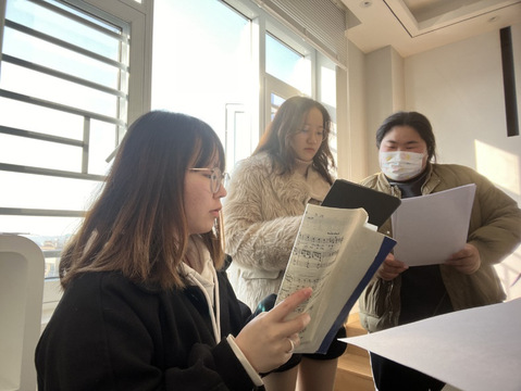 乐团排练也十分顺利。排练由三位实习生负责,在排练过程中,实习生们不仅学会了如何正确处理师生关系,也汲取了许多教学经验。