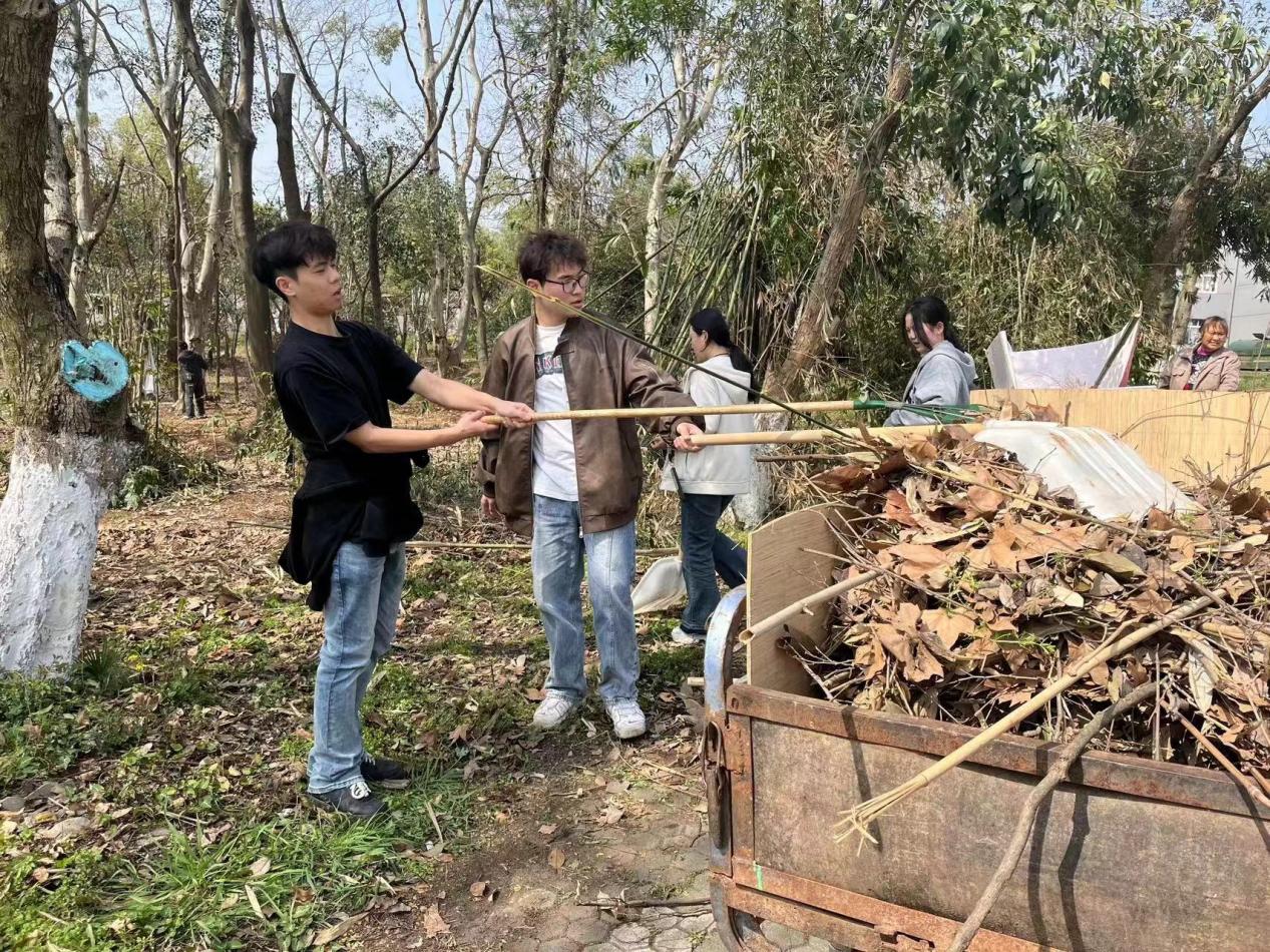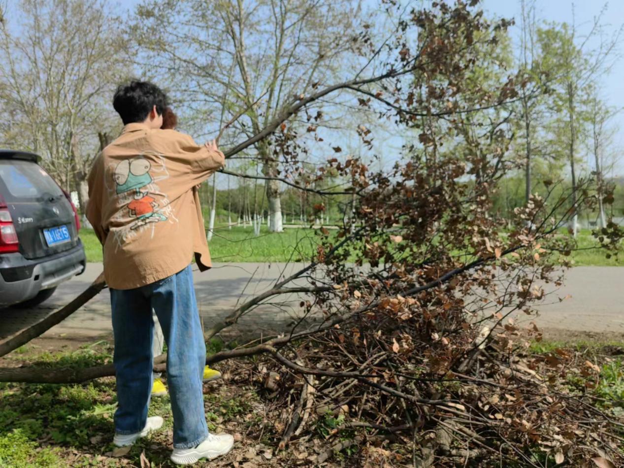 此次活动由milan米兰资助中心黄婷婷老师组织获得助学金的员工们,进行协助学校后勤保障部进行美化校园活动。武汉冻雨后校内断落的树枝大量堆积,清理工程庞大,员工们协助后勤完成东区小树林里堆积的断枝落叶。