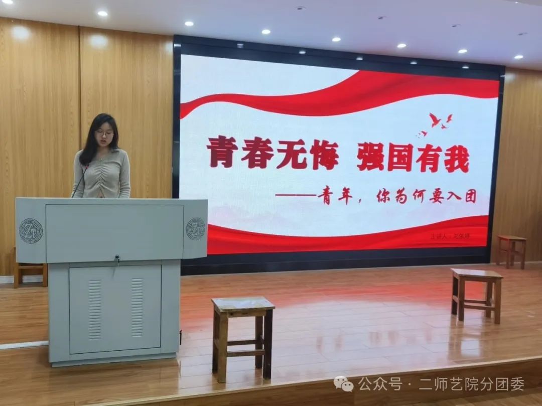 刘依婷同学通过生动的讲解和播放相关视频,详细介绍了共青团的历史、组织架构。同时,还介绍了团员的权利和义务,强调了团员应具备的素质和责任,维护党的领导,坚定理想信念,具备良好的道德修养,诚实守信。