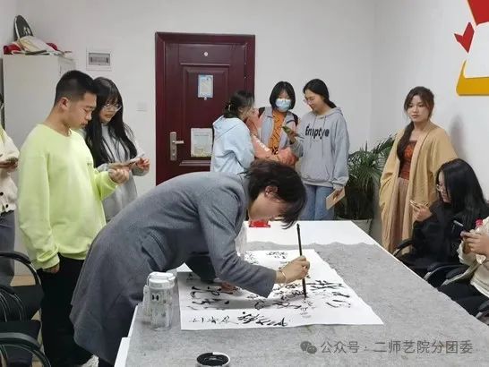 书法老师向同学们介绍了汉字的演变历程和书法的基本知识,活动中还穿插了书法作品欣赏和互动环节。
