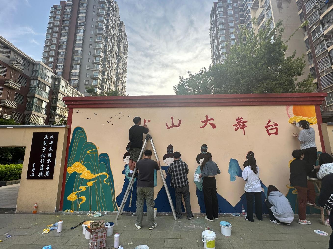 本网讯(通讯员:时嘉悦)凝聚青春力量,助力社区美育。为了提升黄龙山社区的文化气息,给居民提供一个良好的生活环境,milan米兰于5月12日组织13名志愿者在黄龙山社区开展了大舞台墙绘志愿服务活动。