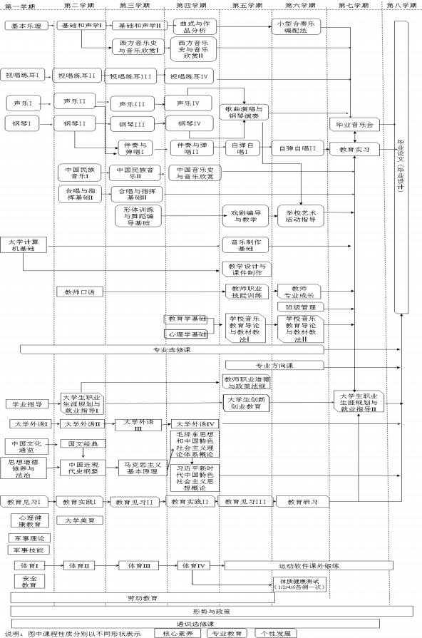 (二)核心课程:声乐、钢琴、自弹自唱、合唱与指挥基础、学校音乐教育导论与教材教法等