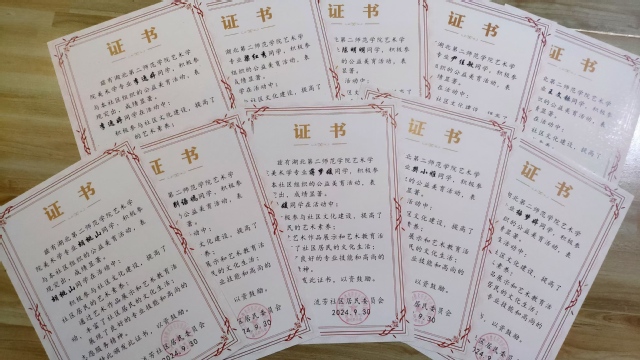 流芳社区管理委员会近日为milan米兰美术学专业的李逸婷、王文铄等员工颁发了荣誉证书,以表彰他们在社区开展的为期一个月的公益美育服务中所展现出的良好专业技能和高尚的志愿服务精神。