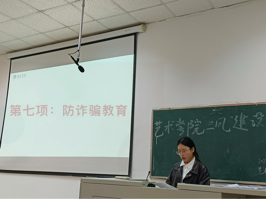 生活外联部部长谢雨菲将话题带领大家进行了防范电信诈骗知识学习。她通过生动的案例,揭示了电信诈骗的种种手段和特点,如冒充公检法、中奖诈骗、冒充亲友等。在面对陌生电话和短信时,要保持冷静,不轻信、不转账、不泄露个人信息。所有同学要在手机上安装好“国家反诈中心APP”并开启来电预警。