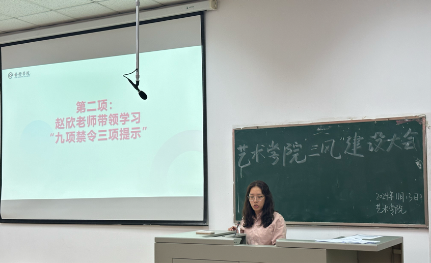 赵欣老师带领同学们学习“九项禁令,三项提示”,让同学们在寝室生活中严格遵守规章制度,完善寝室文化建设,营造出一个良好安全的寝室环境。